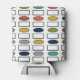 Este refrigerador de bebidas tiene un diseño moderno de mediados de siglo, con rectángulos repetidos y ovales en colores retro.