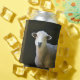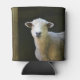 Este refrigerador de bebidas presenta una dulce oveja suave parada en la puerta de su casa en Connecticut.