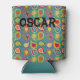 Este refrigerador de bebidas tiene un diseño moderno de mediados de siglo de paisajes recubiertos de colores retro con una capa que tiene un patrón atómico.