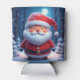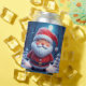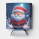 Un alegre Santa Claus se alza en un bosque de nieve por la noche, bajo una brillante luna llena. La escena evoca calidez, espíritu festivo y la esencia de una celebración festiva de Navidades.