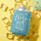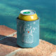 Refrigerador de bebidas de ducha de bodas / plantillas de koozies - Elegante guión de letras y Pareja Vintage mason Jars y String Lights sobre fondo floral azul claro. Un diseño perfecto para tu gran día. ¡Todo el estilo de texto, colores, tamaños se pueden modificar para adaptarlo a sus necesidades!