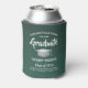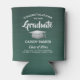 Añada un toque personalizado a la decoración de la fiesta de graduación de la universidad o de la escuela secundaria con refrigeradores de bebidas de color verde oscuro, blanco y plata. El diseño presenta un fondo verde cepillado, un falso tapón de graduación de acero inoxidable, tipografía moderna y elegante, caligrafía de escritura a mano y un mensaje de personalizable que dice "Felicitaciones a nuestro graduado". El texto inferior incluye el año de clase, el nombre de la escuela y una línea opcional para el grado, los honores u otra información. Todo el texto es sencillo para el personalizar. Tenga en cuenta que la plata es color impreso, no Relieve metalizado metálico. Estos elegantes favores hacen una elegante idea de beber de una celebración de graduación. Salud!