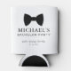Refrigerador de bebidas para la fiesta de soltero con corbata de arco negro y letra clásica y moderna.