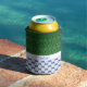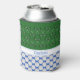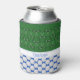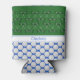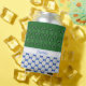 Las pelotas de golf crean un patrón de puntos polka brillantes en un fondo azul tanto en la parte delantera como en la parte trasera de este divertido refrigerador de bebidas para los aficionados al golf. En la parte delantera, los clubes de golf también se utilizan en un patrón complementario sobre el verde, y hay una franja blanca para que puedas personalizar con un nombre u otro texto que coincida con el azul.