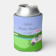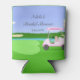 Mantenga la celebración divertida y festiva con este enfriador de latas para la ducha de novia con tema de golf. En el centro hay un green de putting en forma de corazón con un pin de bandera que dice "Novia por casarse". Un carrito de golf decorado añade encanto, completo con champán, regalos, una tiara y una ilustración de pastel de ducha de novia. Un velo de novia cubierto sobre la bolsa de golf une todo el tema, lo que lo convierte en un recuerdo divertido para los invitados. Diseñado por Daphsam, este enfriador de latas único es perfecto para brindar por la futura novia con estilo.