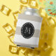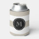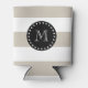Enfriador De Latas Patrón de franjas blancas beiges, monograma negro