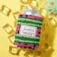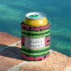 Refrigerador de bebidas de cumpleaños con un lindo patrón de sandía. Corteza verde en capas de rayas junto con una capa de rayas rosas con semillas negras dentro. Diseño divertido y veraniego. Un marco sobre la parte superior con tu texto personalizado dentro.