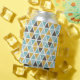 Este modelo moderno de mediados de siglo presenta triángulos dorados y marrones.