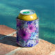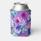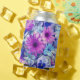 Este es un diseño floral de jardín de fantasía azul y rosa de dahlias, panes, flores de manzana y hojas.