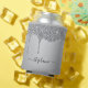 Refrigerador de bebidas de detalles del Purpurina Silver con nombre personalizado y letra manual.