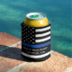 Graduación de la Academia de Policía Refrigerador de bebidas delgado de la Línea Azul - Estados Unidos diseño de la bandera estadounidense con colores de la bandera de la policía. Este refrigerador de bebidas de policía personalizado para los favores del partido de graduación de la academia de policía, regalos de graduación de las fuerzas del orden. Compra a granel este delgado refrigerador de bebidas de la línea azul para regalos de la ceremonia de graduación de la academia de policía. Personaliza con el nombre de la academia de policía, clase y año de graduación, y el nombre de los oficiales de policía. DERECHOS RESERVADOS © 2020 Judy Burrows, Black Dog Art - Todos los derechos reservados. Personalizado de graduación de la Academia de Policía Refrigerador de bebidas delgado de la Línea Azul