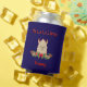 Funny personalized Christmas beer holder can cooler featuring a wooly llama.