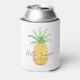 Este divertido refrigerador de bebidas está decorado con una piña amarilla acuarela y las palabras hola verano en rosa. Personalízalo cambiando el nombre en la parte inferior. Acuarela original © Michele Davies.