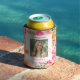 This graduation party can cooler features a watercolor floral pattern in pink, orange, and coral on a cream background, with a photo of your grad, "Congrats" across the top, and her name across the bottom. You add the photo and name and it's ready to hand out at the party. It's the kind of favor guests actually use — and take home as a little keepsake from the celebration.