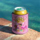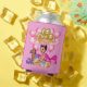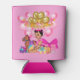 Ilustracion de una adorable bebé vestida de rosa, con el pelo en bollos con arcos rosas y tiara princesa. Rodeado de juguetes y con globos rosados y dorados encima con estrellas y pancartas lunares. Un regalo lindo para los padres que esperan, la ducha de bebé, la revelación de género o el regalo de cumpleaños del bebé.