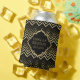 Elegante patrón geométrico chevron zigzag negro y purpurina dorado. Monograma personalizado