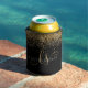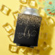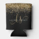 Purpurina Glam Gold Elegant Monograma Refrigerador de bebidas. Personalice fácilmente este diseño refrigerador de bebidas de moda de moda con un elegante purpurina brillante de oro sobre un fondo negro. El diseño incluye su monograma manuscrito con remolques de bonito y su nombre.