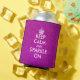 Faux púrpura / purpurina rosado mantener la calma y chispa en los refrigeradores de bebidas Hacer que su propio divertido mantener la calma y seguir con el diseño de la parodia. Tipografía de keepcalmandcarryon con corona. Crea tu propia parodia humorística con esta plantilla. Color del fondo del personalizable. Idea divertida para boda glamuroso, fiesta de cumpleaños, soltera, etc. Espumosos y diseño de brillantes purpurinoso. Impresión a dos caras.