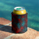 Enfriador De Latas Quadriculados riscados em vermelho e azul claro.
