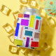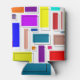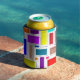 Este refrigerador de bebidas tiene un diseño Bauhaus de rectángulos en muchos colores con su contrapeso de contornos negros.