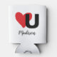 Dale a tu novia o novio este refrigerador de bebidas para El día de San Valentín o cualquier ocasión especial y te amarán por eso. Este moderno diseño presenta un corazón rojo y la letra "U" en tipografía negra con un nombre que usted puede personalizar. Diseñado por la artista de renombre mundial ©Tim Coffey.