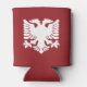 Refrigerador de bebidas rojo con diseño de águila albanesa blanca
