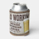 Refrigerador de bebidas de espuma con la imagen del cartel vintage que dice: No trabajar durante las horas de bebida.