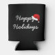 Refrigerador de bebidas mostrado en un color sólido de negro con texto feliz de vacaciones y un sombrero santa. Personalizar este artículo y agréguelo o compre tal cual.