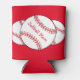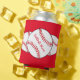 Este refrigerador de bebidas cuenta con softball rojos y blancos rodeados de un fondo rojo. El texto dice: Mamá de Softball. Personalizar fácilmente el texto para un hincha especial de deportes o elimina por completo. ¡Genial para el Día de la Madre o en cualquier época del año!