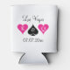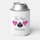 La temática de Las Vegas monogramaba refrigeradores de bebidas bodas. El diseño de los trajes de cartas de juego de neón rosa y negro con las iniciales del nombre de la novia y el novio más la fecha del matrimonio. Tipografía de escritura elegante. Portada de bebidas con temas de póquer con un elegante monograma. También es agradable para un compromiso acogedor o fiesta de aniversario. Diseño de reinas y reinas de corazones.