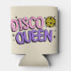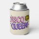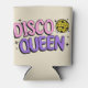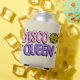 Diseño de texto de estilo retro colorido "Disco Queen" con decoración de disco negro y amarillo