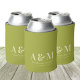 Enfriador De Latas Retro Green & Ivory Monogram Wedding Can Cooler