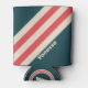Enfriador De Latas Retro Teal Vibe Stripes with Name