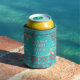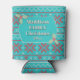 Keep your cans cold with this retro ugly sweater this Christmas! Set against an attractive, Nordic knit aqua blue color, red and off-white design accents with a centered, aqua blue banner bordered by holly and berry greenery. Keeps the cold in, so it's warmer to hold in your hand. Perfect for the family Christmas party or social office party. Text and year templates available!