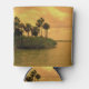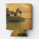 Un grupo de palmeras en un pedazo de tierra que se extiende hasta una vía navegable de Florida. Se alzan sobre una barrera de vegetación y se paran cerca de la silueta contra un cielo lleno de tonos azafrán que se reflejan en la superficie del río. Basado en una escena cerca de Cabo Cañaveral.