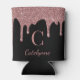 Enfriador de lata con monograma de destellos rosados dorados con gotas de purpurina que presenta purpurina falsa brillante que gotea sobre un fondo negro elegante. Agrega tu nombre y monograma para un enfriador de lata único y personalizado. ¡Estás envuelta en lujo, así que tu vida debería mostrarlo! Ideal para despedidas de soltera, damas de honor y amigas. Contáctanos en cedarandstring@gmail.com si necesitas ayuda con el diseño o deseas consultar sobre productos coincidentes.