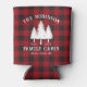 Personaliza tu casa de vacaciones rural con hermosos refrigeradores de bebidas de temática rústica, con tu nombre y "Cabina Familiar", Rancho, Alquiler u otro texto junto con su fecha y ubicación establecida si lo deseas. Este diseño personalizado y único presenta encantadores textos rústicos de estilo rústico con una silueta blanca de pinos sobre una clásica estampada de búfalo rojo. Perfecto para las vacaciones de sus navidades o en cualquier época del año. Para ver más diseños como este, por favor visite mi tienda aquí en "Zazzle.com/Store/Rustic_Charm". ¡Gracias.
