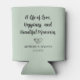 Celebra tu día especial con este refrigerador de bebidas boda bellamente diseñado que presenta la sincera frase "Saludos al amor, risas y felicidad para siempre después". Este personalizable incluye los nombres de la pareja y la fecha del boda, lo que lo convierte en el lugar perfecto para los huéspedes. Con una fuente de escritura elegante y un suave fondo pastel, esta manga de bebida añade un toque de elegancia a cualquier boda, fiesta de compromiso o celebración del aniversario. Mantenga las bebidas frías mientras crea recuerdos duraderos con este encantador y funcional accesorio boda.