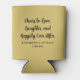 Celebra tu día especial con este refrigerador de bebidas boda bellamente diseñado que presenta la sincera frase "Saludos al amor, risas y felicidad para siempre después". Este personalizable incluye los nombres de la pareja y la fecha del boda, lo que lo convierte en el lugar perfecto para los huéspedes. Con un diseño de escritura y un elegante fondo dorado, esta manga de bebida añade un toque de elegancia a cualquier boda, fiesta de compromiso o celebración del aniversario. Este encantador y funcional accesorio boda mantiene las bebidas frías mientras crea recuerdos duraderos.
