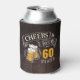 Elegantes vítores y cervezas a 60 años diseño tipográfico sobre fondo de grano de madera marrón, Personalizado con tu propio texto, divertido y único, genial para cualquier idea de regalo de cumpleaños para hombres, o favores de fiesta de aniversario para cualquier ocasión.