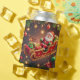 Una alegre representación de Santa Claus viajando en trineo jalado por un reno, rodeado de decoraciones navideñas y adornos festivos. Perfecto para proyectos temáticos de vacaciones, celebraciones de Navidades o saludos de temporada.