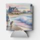 This dreamy coastal artwork captures a tranquil moment at the shoreline, where a woman strolls barefoot with her dog, the soft pastel tones of the setting sun casting a warm glow on the sand and sea. A charming beach house sits nestled among windswept grasses, its porch inviting and timeless, while a stately lighthouse watches over the horizon. Gentle waves roll in with watercolor softness, and hints of blush pink, misty blue, and sun-kissed gold give the scene an ethereal, nostalgic quality. The entire composition evokes slow living, serenity, and the quiet magic of coastal escapes. With a relaxed, coastal cottagecore vibe and a soft, painterly style, this piece blends warmth and whimsy in perfect harmony. AI generated artwork.