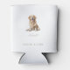 Enfriador de lata personalizado para boda de mascotas. Envíeme una foto de su perro que pueda usar, cambie la foto usted mismo o dígame la raza del perro y puedo enviarle un borrador de la servilleta. Este es un Golden Retriever. Los cambios deben hacerse antes de pedir los enfriadores de lata. El diseñador no maneja la impresión ni el envío.