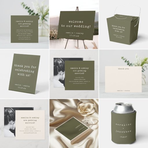Minimalist Olive Classic Typewriter Wedding SuiteDiseñado por Opal Ellery