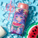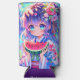 Bonito acuarela arte que representa a un lindo chica de anime con el pelo morado comiendo sandía en un caluroso día de verano.