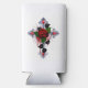 Enfriador De Latas Slim Cruz de Plata con una Rosa Roja
