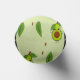 Un aguacate kawaii sobre el patrón de fondo verde.