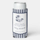 ÚLTIMO BRINDIS EN LA COSTA | Enfriador de lata para despedida de soltera. Ilustración de escena costera en azul marino con tipografía, marco y patrón de franja coordinados.