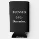 Enfriador De Latas Slim Divertido "Bendito En Julio". Blanco y negro