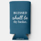Divertido "Bendito Será Tu Cesta" Refrigerador de bebidas Seltzer Azul y Blanco. Añade tus citas favoritas. Este gracioso refrigerador de bebidas está inspirado en la versión del Rey James de Deuteronomio 28:5, "Bendito será tu canasta y tu tienda". ¡Disfrútalo!